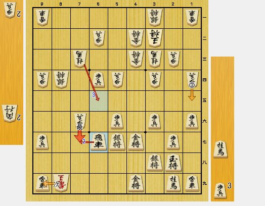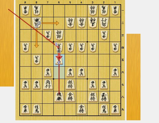 6六歩と飛車の頭をたたかれたのです。6二にも歩がいるのでニ歩。81道場では、二歩は負けになります。これで、勝ちを拾いました。
