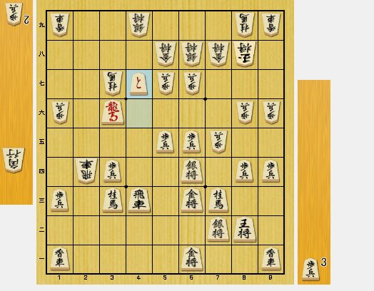 図3で、相手の方が投了されました。中盤での早い投了ですが、4七のと金が大きく、桂馬を取れば7六桂打も厳しいです。投了も仕方ないかもしれません。