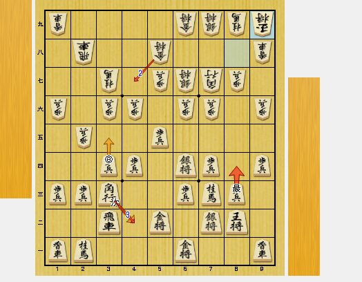 図1から、3五歩と突き、石田流に組み替えました。これが事件の始まりでした。