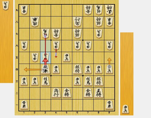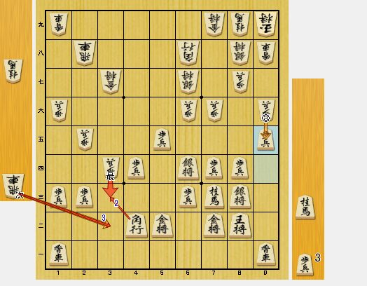 図2では、3五同飛車と取って、まだ何とかなると思っていました。しかし、同飛車に4五歩と突かれて、3四飛車と引いて、事件に気づきました。