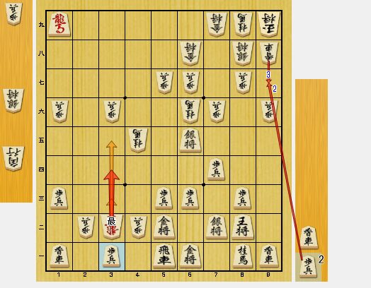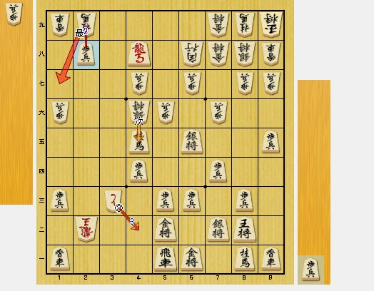 図2で、2八歩と打ったのが手筋の歩打ちです。同龍と取らせることで、1手稼げます。しかし、今回は取らない手もあると思っていました。