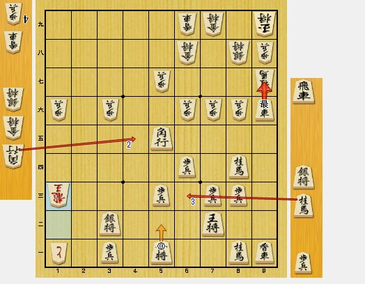 図4では、最後のお願いの端攻めを狙いました。桂香があるので、勝負になったかもしれないと思っていました。